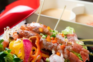 鍋用の絶品濃厚ウニソースとオマール海老ソースに、串カツをフォンデュ!