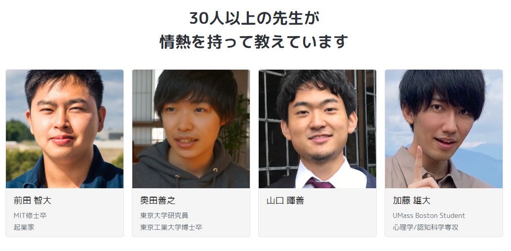 MITやケンブリッジ大学、東大などのトップ大学の現役学生や、東大の研究員など高学歴講師が授業を担当。21年7月から開始し、登録する小学生は900人を超える。平均レビューが4.86と、多くのクラスが高評価を受けている。