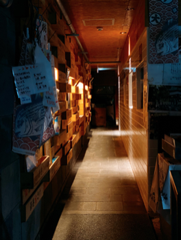 一見、料理屋さんなんて無さそうに見えるけど…。魚屋の脇を抜けて奥に進むと…。