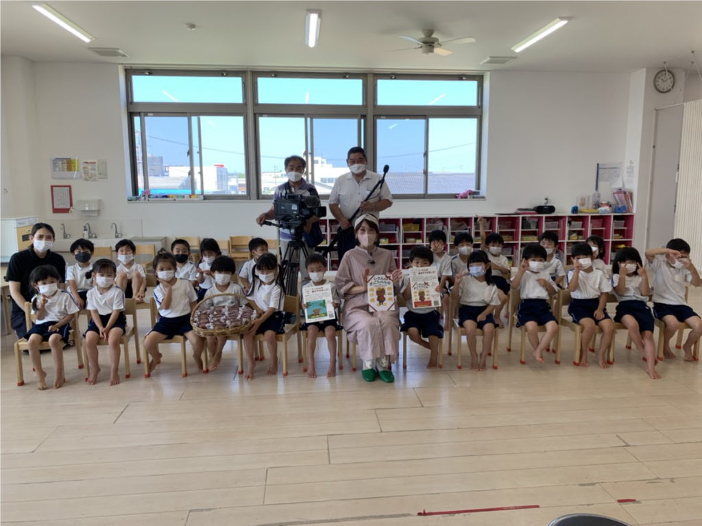 ⼦供たちに、コロナ禍をくーたんのようにポジティブに乗り切ってほしいと、地域の認定こども園「とっとりまなびや園」にて、年中クラスの⼦供たちへの読み聞かせ会を開催した。