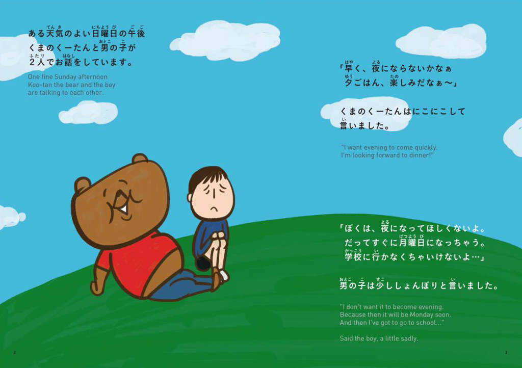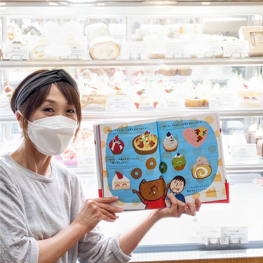 ケーキ屋として、コロナ禍で不安を抱える⼦たちをどう励ませるのか。そこで考えたのが、オリジナルの絵本をプロデュースすることだった。ストーリーは「学校に⾏きたくない」とネガティブになる男の⼦を、くまの「くーたん」がポジティブな⾔葉で励まし続け、男の⼦が元気になる…という内容。
