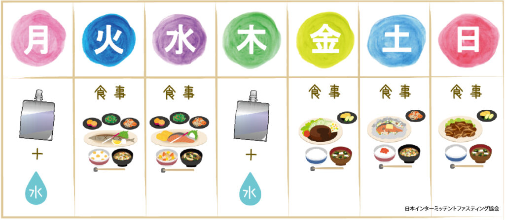1週間のうち2日間のみ、健康的な食事でカロリーを抑えるファスティング!それ以外の5日間は食事をして OK というダイエット法!