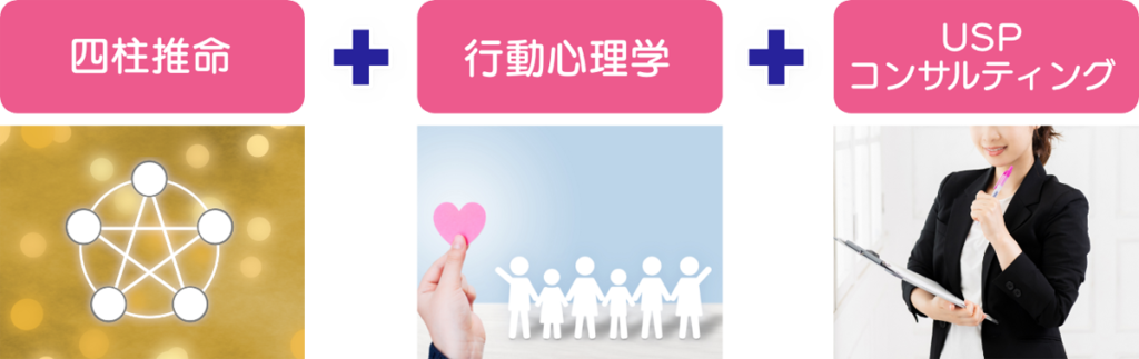 2020 年 11 月からサービス提供を本格開始した「USP プロファイリング®」とは、「四柱推命」の占いと、「行動心理学」「USP プロファイリング®」を利用したカウンセリング。