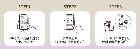 「いいね!」を一定数集めると、その商品を報酬として無料で受け取ることができる!