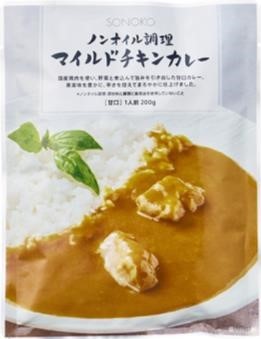 カレーなのにバターやオイルを使わずに調理した「ノンオイル調理 マイルドチキンカレー」。油脂を使用しないため、スパイスの香りと素材の旨味を引き出す独自の製法を採用。香り、旨味、甘味、コクが溶け込み、老若男女問わず楽しめるレトルトカレーとなっている。5 月からは、脂身をできる限りカットした「国産牛の極旨牛すき丼」を販売。レトルトの種類は、20 種類以上。
