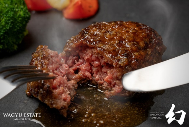 素材に徹底的にこだわり過ぎて、供給が安定しないため「幻のハンバーグ」と名付けられた。黒毛和牛の、脂質が低く風味が濃厚な希少部位を使用。1頭から 10kg しかとれない部位!10kg のネックからハンバーグが約 80 個しか作れない!ネックの仕入れ量によっては、1日 80 個しか作れないという超希少価値が高いハンバーグ!