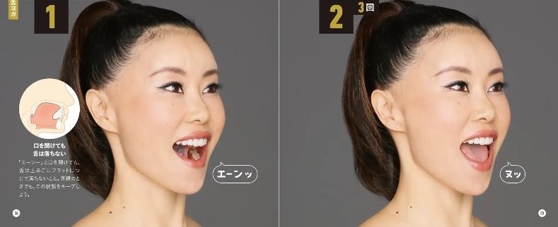 「美顔ヨガ」最大のポイントは、舌を正しい位置(上あご)にぴったりつけるという点!これを実践すれば、たるみ予防だけでなく、食いしばりがなくなり、エラがはらなくなる。また、二重アゴを解消できる。さらに、上あごを上げられるため、目が大きくなる。