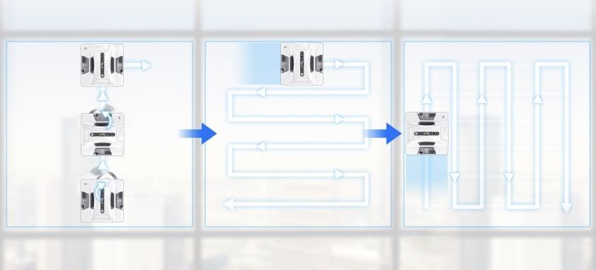 「HOBOT-2S」は、一般的なリビンングの窓では 99%以上の範囲を徹底的に清掃し、清掃時間は約 2 分 40 秒で完了できる!搭載されたセンサーにより、窓枠や窓枠のないガラス面でも安全に清掃ルートを検知!デュアル超音波式スプレーがロボットの進行方向に洗剤を噴霧して効率的な清掃を実現!