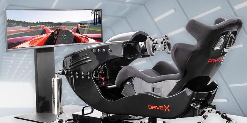 トランポリンを使うバーチャルトレーニング・体幹を鍛えるドライブシミュレーター、店ごとに異なるバーチャルトレーニングを揃えている