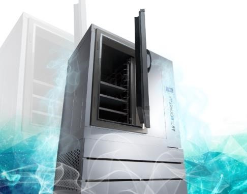 通常、0℃~-5℃の通過時に、氷結晶が大きくなり細胞が損傷…。横浜桂林が導入した特殊冷凍マシン「アートロックフリーザー」は、急速冷凍は、急速・均一に冷却することで細胞損傷を極少化でき、うまみ成分の流出を防ぐ。