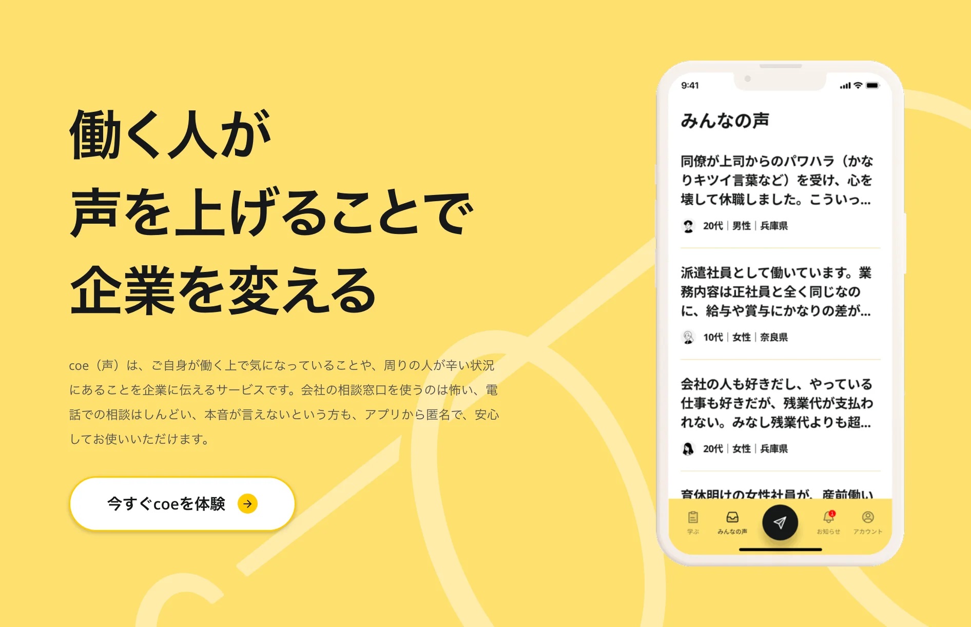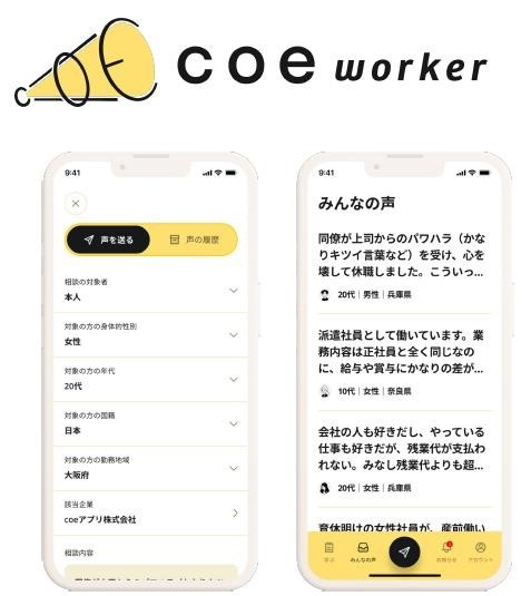 匿名で会社の問題・不満を伝えることができるアプリ「coe worker」