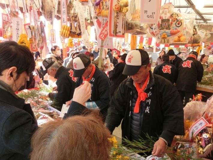 市外・府外の方々も参拝し、その数は 10 万人を超え、神社を代表する行事となっている。これまでも地域の方々が参加していたが、2024 年の「ねや川戎大祭」には 神社近くに位置する、障がい者就労支援施設「アンサンブル」の方々が奉仕する!「アンサンブル」の方々は「戎っさん」に欠かせない “福笹”に 千両箱や鯛など縁起物付けなど、祭りの準備に奉仕する。