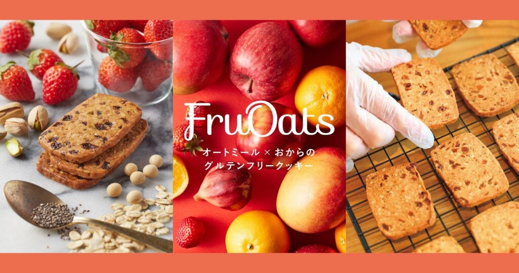 ヴィーガン&グルテンフリークッキー「FruOats(フルオーツ)」は、2024年3月に累計販売枚数が190万枚を突破している。(2021年9月8日~2024年3月12日の累計販売枚数)2021年9月よりAmazonでの販売を開始し、2022年3月に公式オンラインショップと実店舗(清澄白河・住吉エリア)をオープンした。