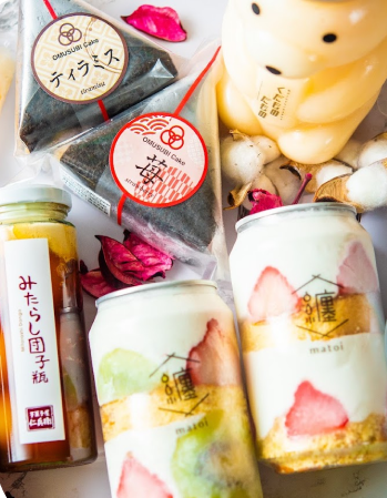 かわいいネオンのライトの内装や、コンビニやスーパーには並ばない見た目がおむすびに見えるスイーツ「おむすびケーキ」など、全国の映えスイーツを100種類近く取り揃えている