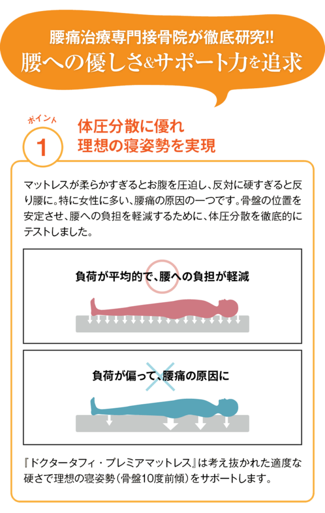 【10万人以上の腰痛を治療した整体師が寝具メーカーと共同開発したマットレス】日本人に最も適した高反発と低反発の二層構造で腰痛対策する「ドクタータフィ」