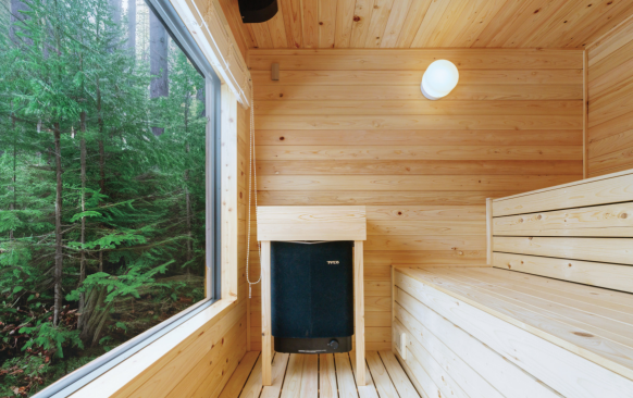 通常、トレーラーハウスは鉄で作られることが多いが、木材は熱伝導率が低いため、一度サウナ室を温めたら冷めにくい香りが良いのも魅力!