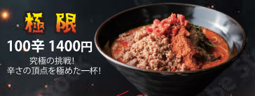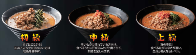 「初級」、「中級」、「上級」から「極限」まで辛味度4段階