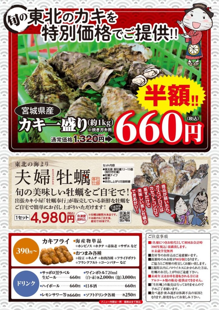出張カキ小屋は、東日本大震災の後、風評被害に遭った宮城県石巻の牡蠣を多くの人に食べてほしいとの思いから、始まったのがきっかけ。