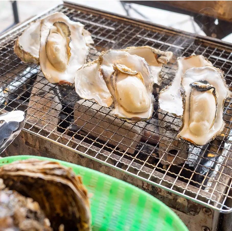 産地直送の殻付き牡蠣を、会場に設置したバーベキューコンロで焼きながら食べる!