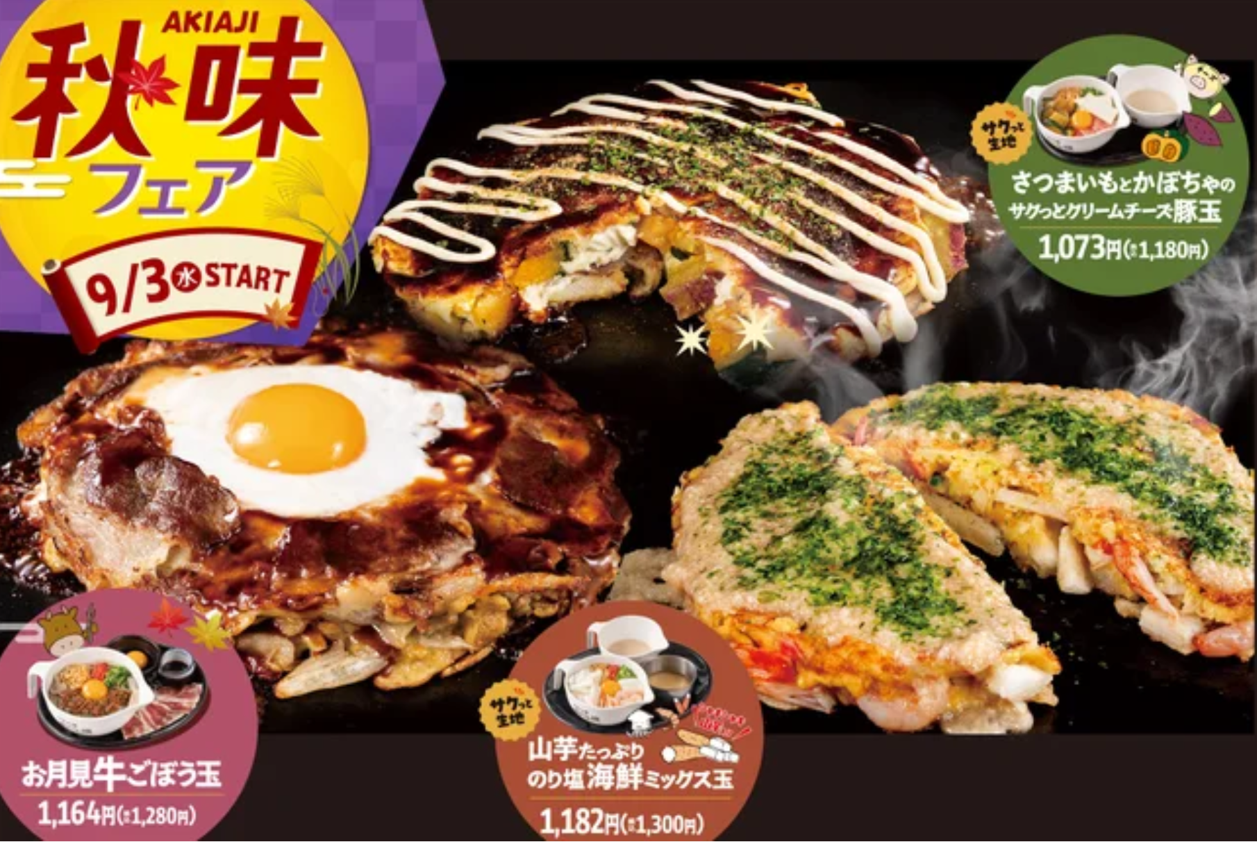 株式会社道とん堀(本社:東京都福生市、代表取締役社長:稲場裕幸)が運営する「お好み焼 道とん堀」は、2025年9月3日(水)から12月2日(火)までの期間限定で、「秋のごちそうお好み焼き」を販売いたします 。
