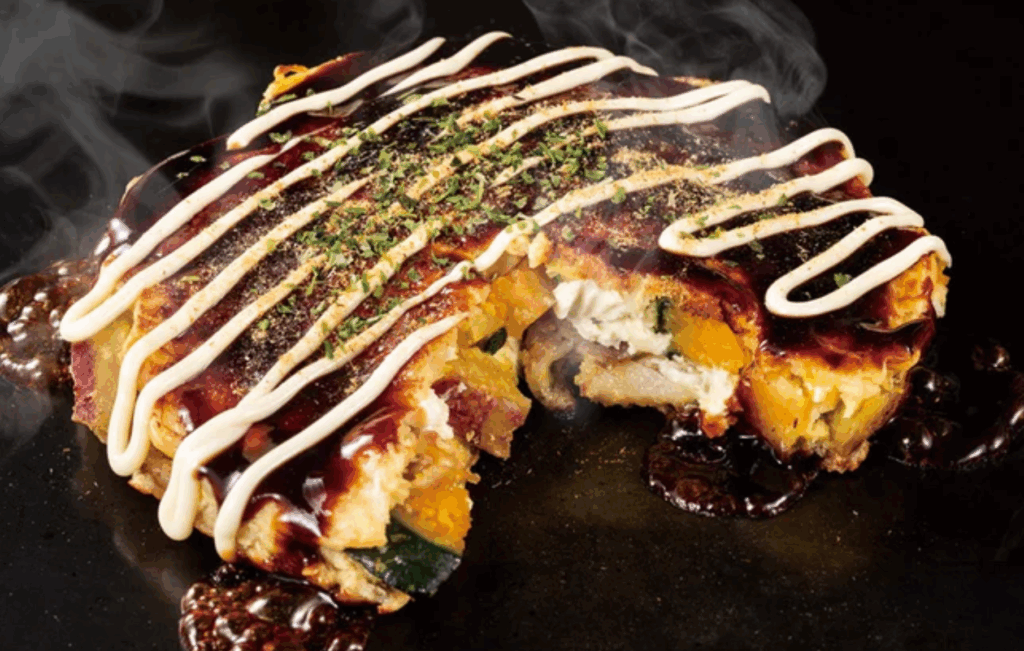 山芋をスティック状にカットし、サクッとした食感に仕上げた海鮮入りお好み焼き。
