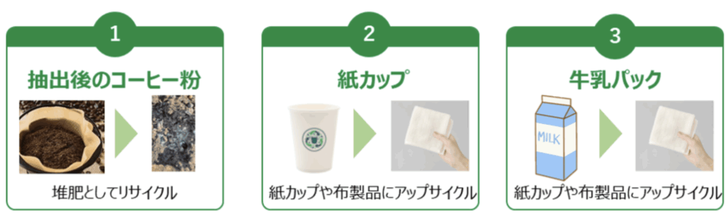 【会場内でコーヒーかすや紙カップを資源循環へ】