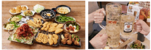 全コース、生ビールを含む 60 種類以上のドリンクが楽しめる飲み放題付きです。