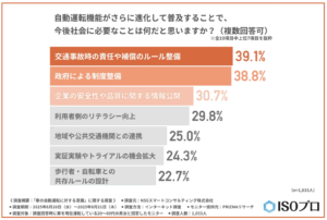 自動運転機能の進化と普及にあたって今後社会に必要なことについては、法制度面の対応が重要視されていることに加えて、多面的な基盤整備の必要性も浮き彫りとなり、技術だけでなく、制度・情報・教育を含めた社会全体での受け入れ体制構築が求められているといえるでしょう。