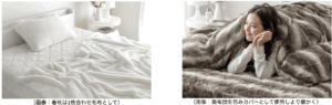 本製品は2way仕様となっており、春秋は2枚合わせ毛布として、冬は掛布団カバーとして使用することにより、より暖かく、オールシーズン快適に使えるようになっています。
