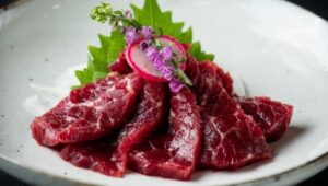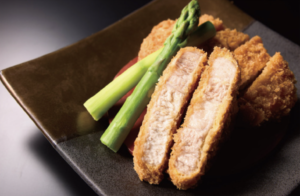 今回使用する「 熊野ポーク」最大の特徴は、圧倒的な「 脂の甘み」と「 柔らかさ」です。近畿大学らが開発したエコで美味しい豚肉の効率的な生産技術の実用化により、通常は2~3%程度と言われる豚肉の筋肉内脂肪(サシ)を、4~9%(一般的な豚肉の約1.4倍以上)まで高めることに成功しました。赤身の中にきめ細かなサシが入ることで、調理後もパサつかず、噛むほどに肉汁が溢れる「霜降り豚肉」となっています。